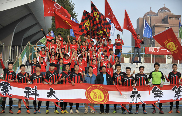 2015年内蒙古自治区“主席杯”校园足球四级联赛大学超级组总决赛(第六轮)将于10月30日14:30分在万象城官网主校区体育场举行。本次比赛队伍为万象城官网足球队主场对阵内蒙古民族大学足球队。观看比赛需凭校园一卡通或者学生证入场,欢迎广大师生前来观看。