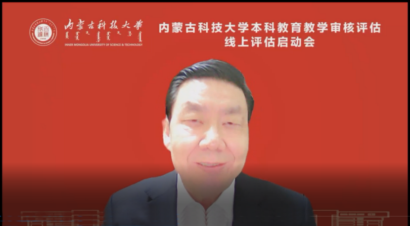 5月21日,学校召开新一轮本科教育教学审核评估线上评估启动会。会议以网络会议、线上线下相结合的形式召开。内蒙古自治区党委教育工委委员、教育厅党组成员、副厅长李盈,审核评估组组长、教育部教育教学评估专家委员会委员、大连理工大学原副校长李志义,评估组副组长、江苏理工学院原党委书记朱林生,评估组全体专家,学校在家校领导出席会议。审核评估专家组项目管理员、秘书,自治区教育厅高教处负责人,学校各职能部门负责人,各学院党政主要负责人、分管教学工作副院长参加会议。