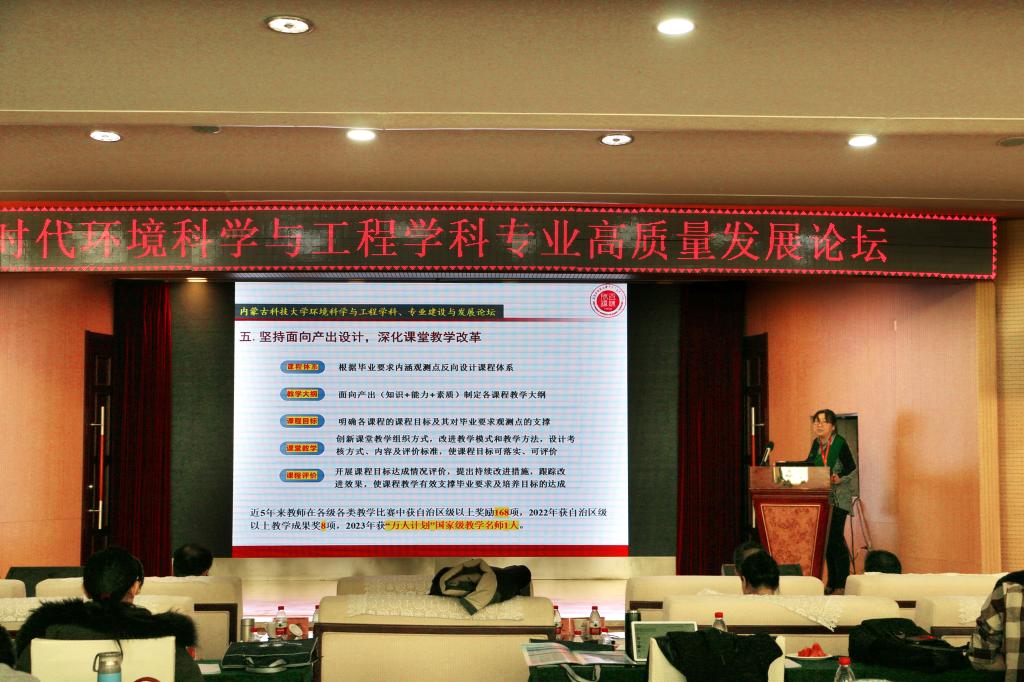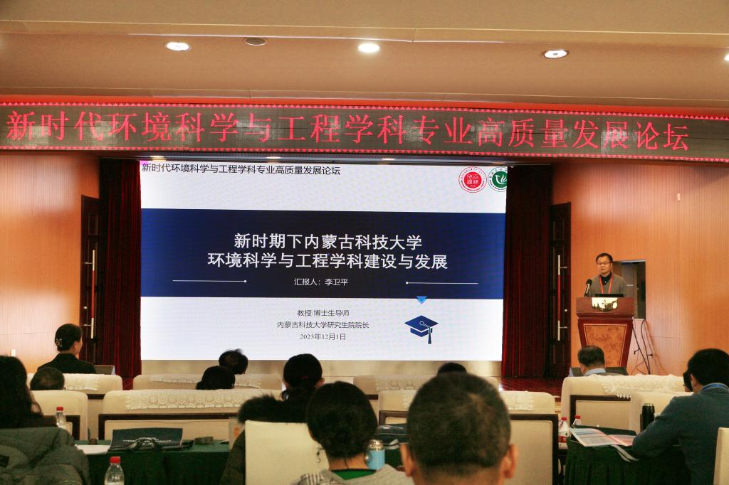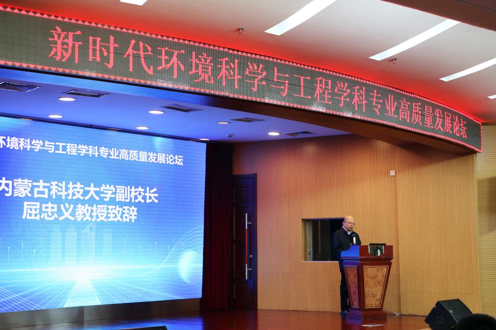 12月1日上午,“新时代环境科学与工程学科专业高质量发展”论坛在稀土国际大酒店举行,副校长屈忠义出席并致辞。来自北京师范大学、北京科技大学、华北电力大学、宁夏大学、内蒙古大学、西安建筑科技大学、上海第二工业大学、太原科技大学、内蒙古工业大学、ALLWINCITY万象城等高校的近百位专家学者、师生代表参加了论坛。