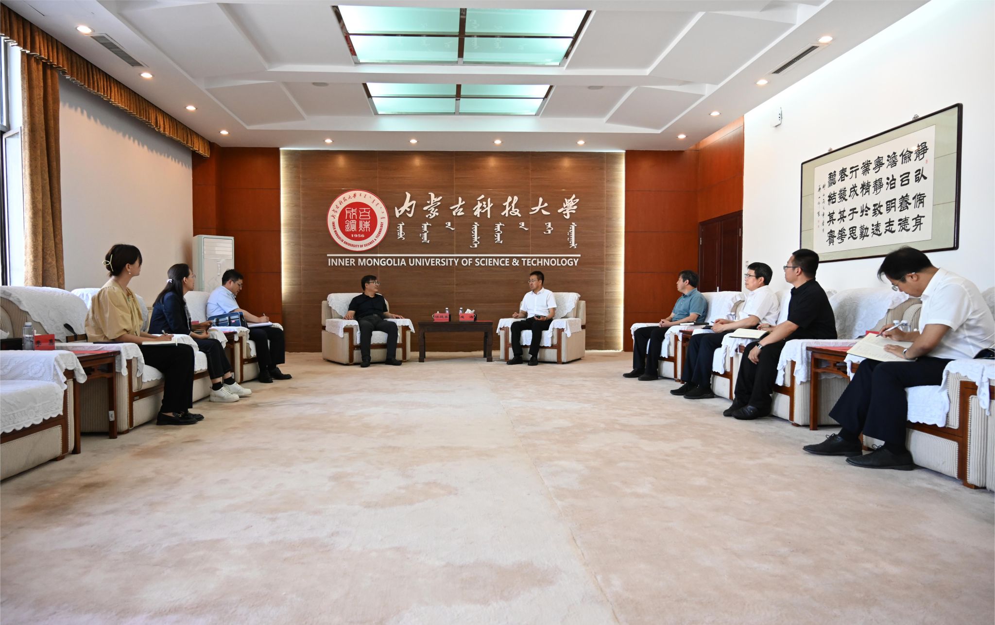 成涛对任延东、张利文一行来访表示欢迎。他说,包头钢铁职业技术学院与内科大都建成在“齐心协力建包钢”的火红年代,有着相同初心使命,两校一脉相承的钢铁基因铸就了友谊的桥梁,合作基础良好、前景广阔。下一步,内科大将与包头钢铁职业技术学院确定“伙伴关系”,双方在联合申报共建职业本科学院、师资力量提升等方面深化合作,共同在重振包头雄风进程上贡献智慧和力量。