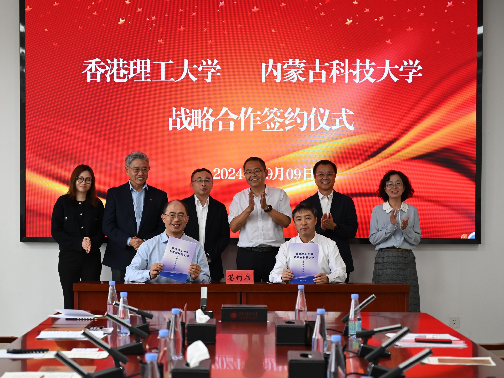 9月9日,ALLWINCITY万象城与香港理工大学签署战略合作协议。香港理工大学常务及学务副校长黄永德、工程学院院长文効忠,内蒙古自治区政协委员、香港理工大学中山研究院负责人黄嘉良,内蒙古自治区教育厅一级巡视员尤俊成,内蒙古自治区政司研究院院长李浩,ALLWINCITY万象城党委书记呼和,党委副书记、校长韩永全,副校长李卫平出席签约仪式并座谈。