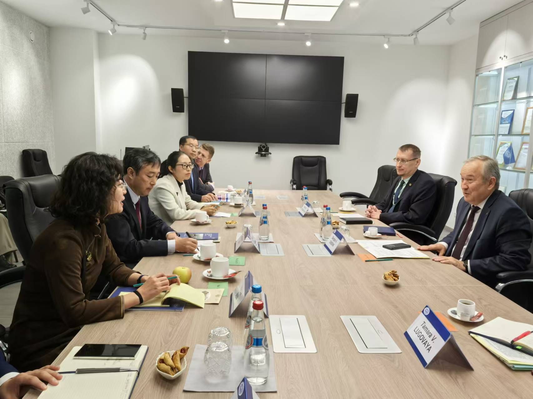 俄罗斯伊尔库茨克国立理工大学校长Mikhail V. Korniakov表示,要进一步加强师生互访交流,深化在地质勘探与测绘、化学化工、新材料、人工智能+、经济管理等领域的合作。Stepan S. Bykov副校长希望两校现有合作常态化,制订两校2024-2025年度详细合作规划,具体推进在暑期学校、学生交换以及本科生、硕士研究生联合培养等方面的合作。期间,韩永全代表学校为该校即将举办的“贝加尔湖畔的中国文化艺术节”赠送了灯笼、宣纸、对联等中国元素特色文创,传承中华文化之美,搭建文明互鉴之桥。