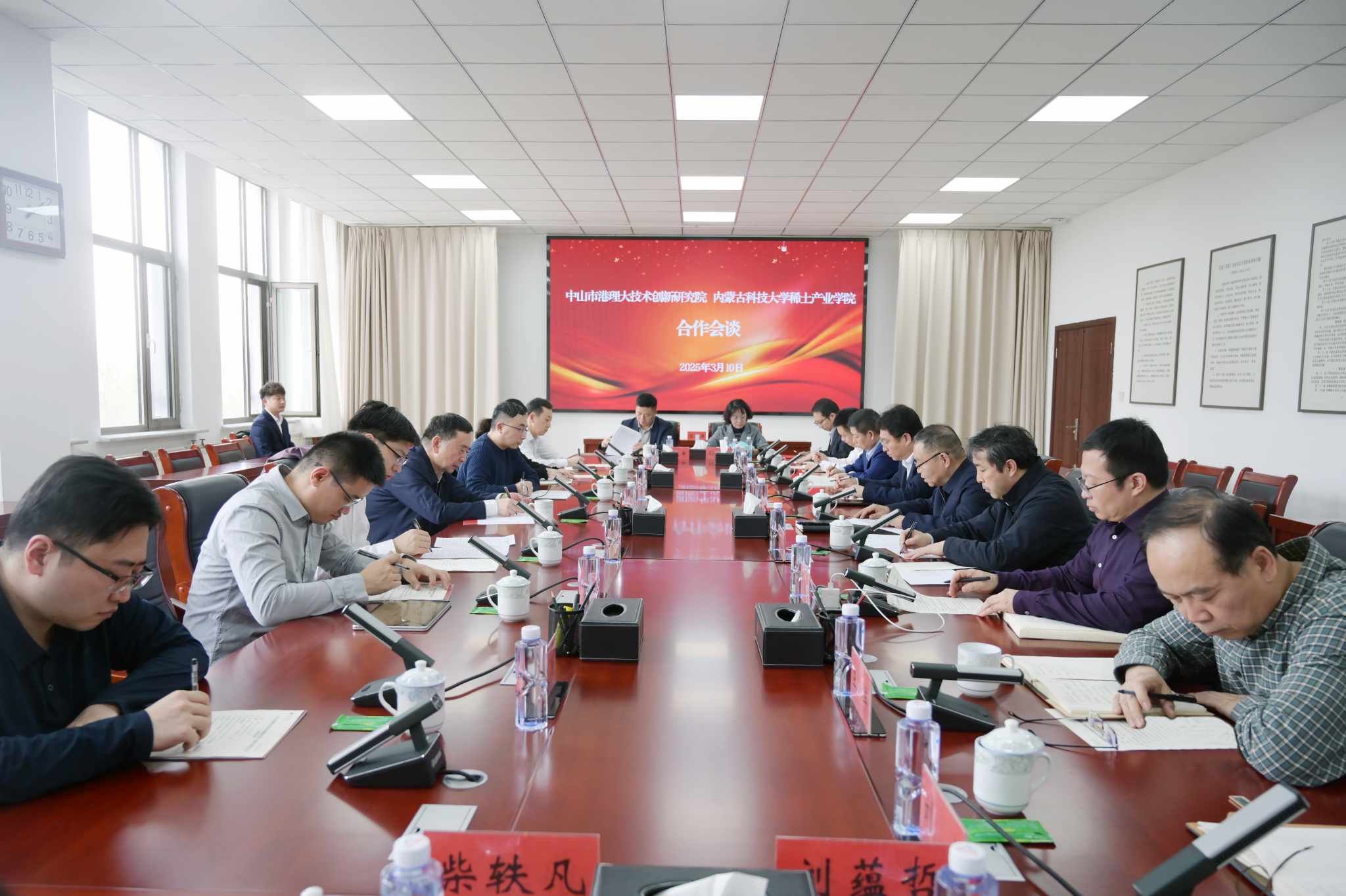 呼和对黄嘉良一行表示热烈欢迎,向自治区教育厅长期以来给予内科大的关心与支持表示感谢。他说,香港理工大学作为世界一流的研究型大学,在科技创新、成果转化、国际化人才培养等方面具有显著优势,中山市港理大技术创新研究院是粤港澳大湾区创新驱动发展的标杆平台。此次共建联合实验室,聚焦稀土材料的高端应用与产业化,是学校深化开放办学、融入国家战略的关键一步,为推动内蒙古稀土资源从“量”的优势向“质”的跃升提供了重要契机,为“两个稀土基地”建设贡献力量。