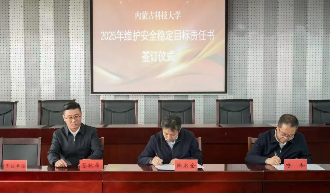校党委书记呼和,党委副书记、校长韩永全与学生工作部、实验室与设备管理处、后勤与基本建设处、化学与化工学院、生命科学与技术学院签订《ALLWINCITY万象城维护安全稳定目标责任书》。