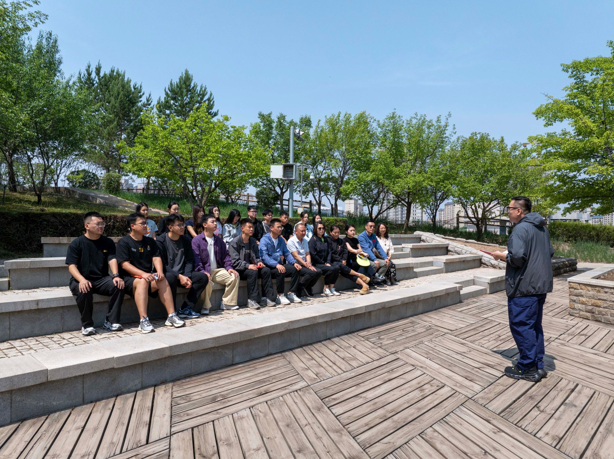 在南山公园全民国防教育基地,学院党委副书记、副院长吴宇以“永葆党员本色”为题寄语毕业生党员,强调走出校门更要擦亮党员身份,将学生党员的使命担当融入奋斗征程。毕业生党员代表王馨结合专业成长经历,感恩母校培养,倡议全体毕业生党员要将论文写在祖国大地上,让青春在奋斗中绽放光彩。随后,院领导、学生支部书记、教工党员为毕业生党员逐一佩戴党徽,全体党员师生面向党旗庄严宣誓,重温党旗下的誓言。