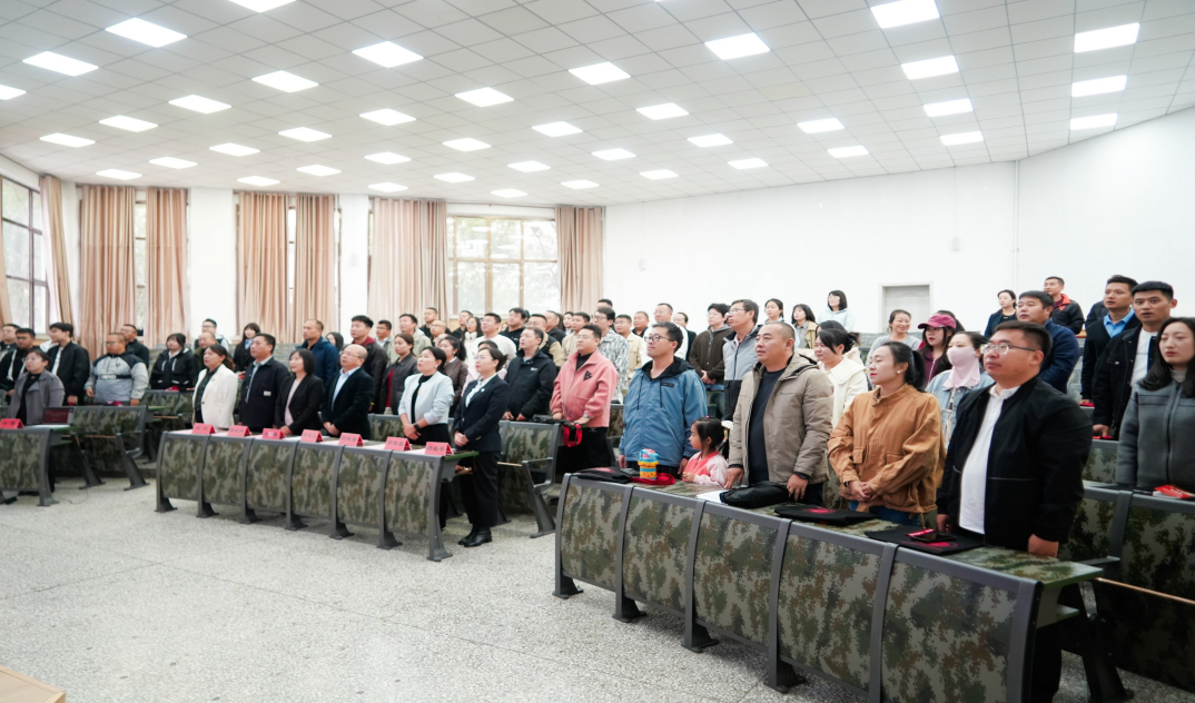典礼在庄严的国歌声中拉开序幕,全体师生和嘉宾肃立齐唱,歌声激荡,承载着学子们的爱国情怀与对过往奋斗岁月的深刻铭记,现场气氛庄重而热烈。