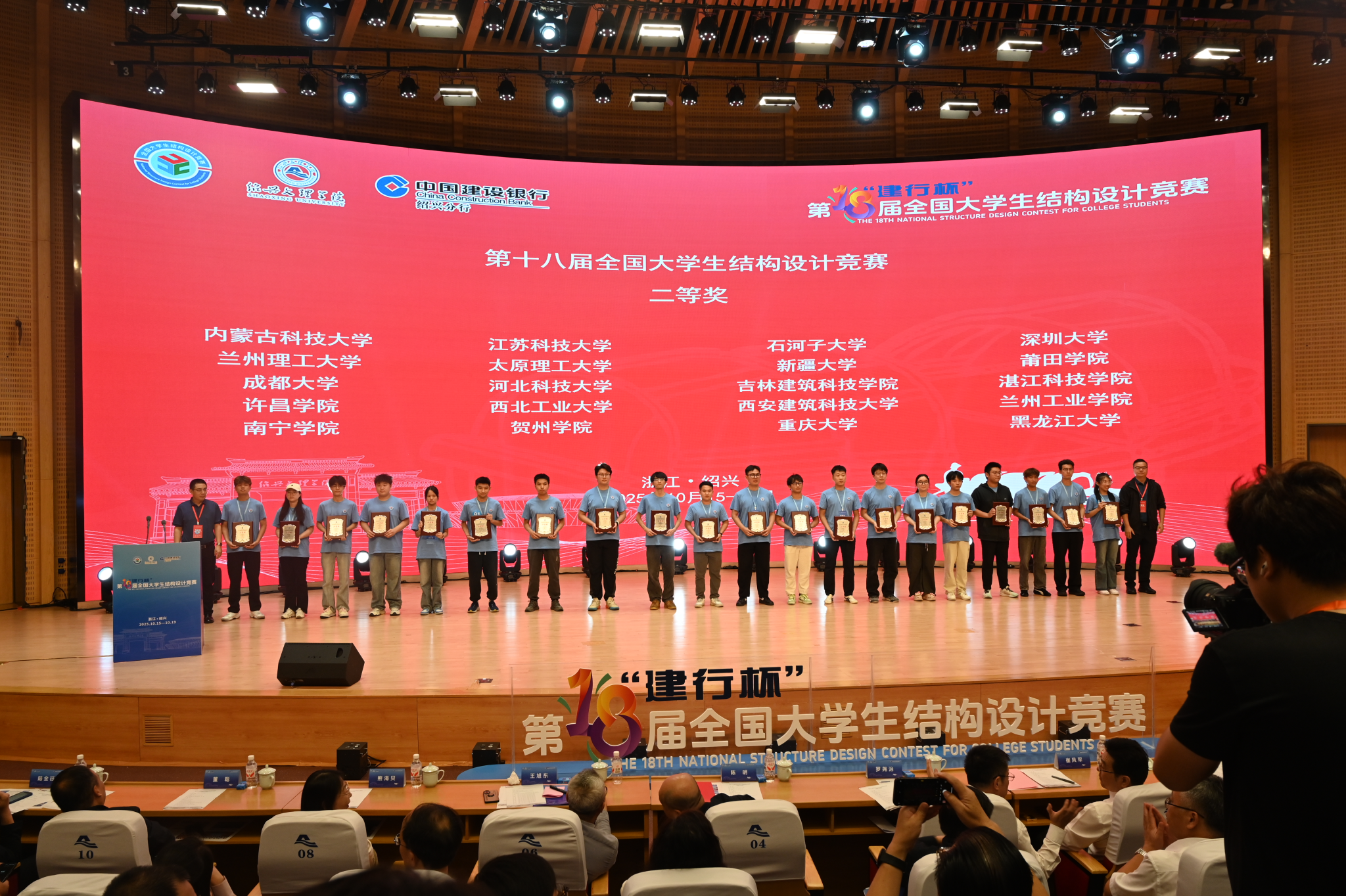 10月15日至19日,第十八届“建行杯”全国大学生结构设计竞赛在绍兴文理学院举办,经过激烈的角逐,万象城官网由土木工程学院23级学生曹朋朋、黎坤、孔璀英同学组成的“金鹰战队”在汤伟老师的指导下荣获二等奖,同时万象城官网获本届竞赛优秀组织奖。