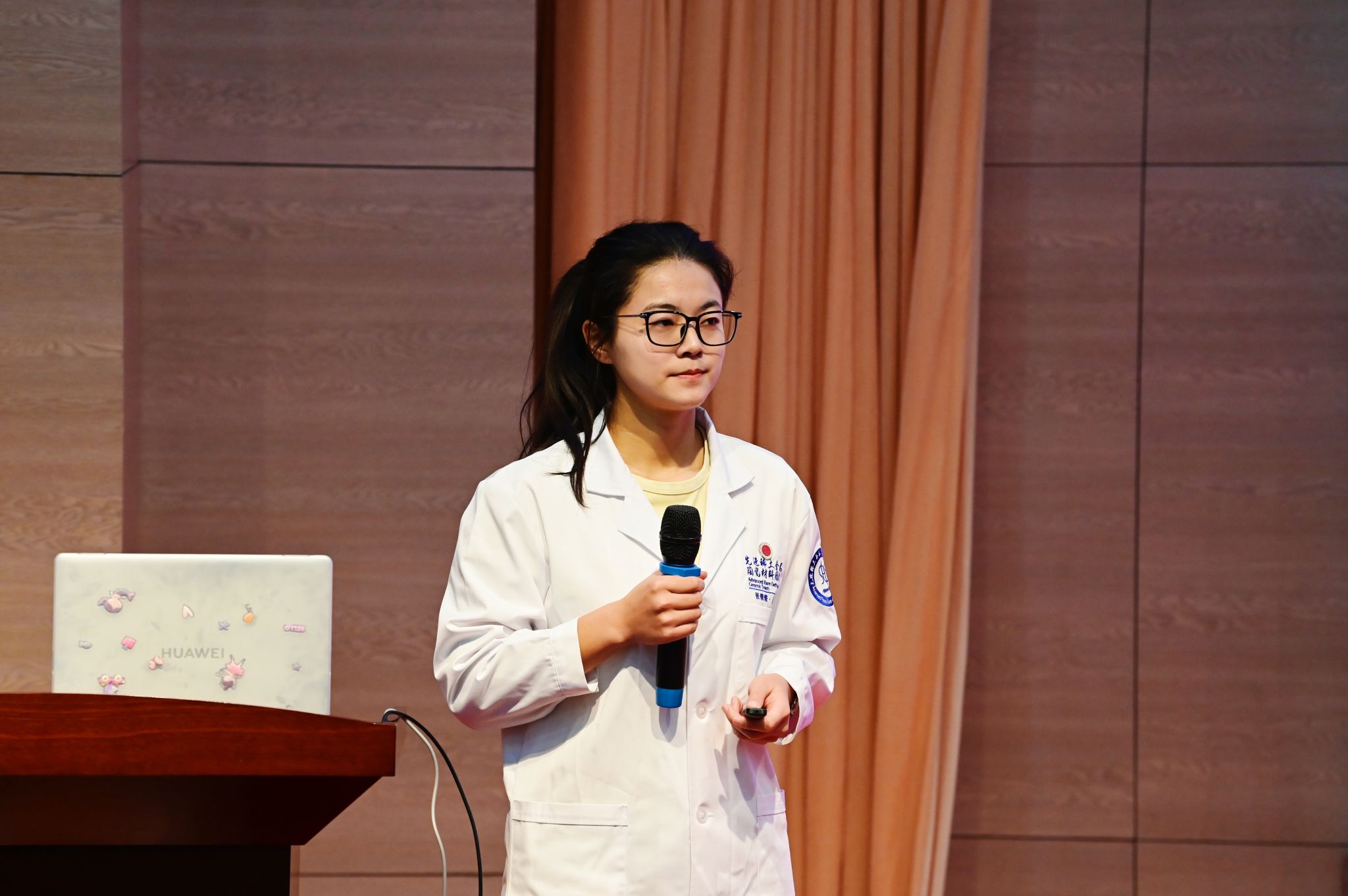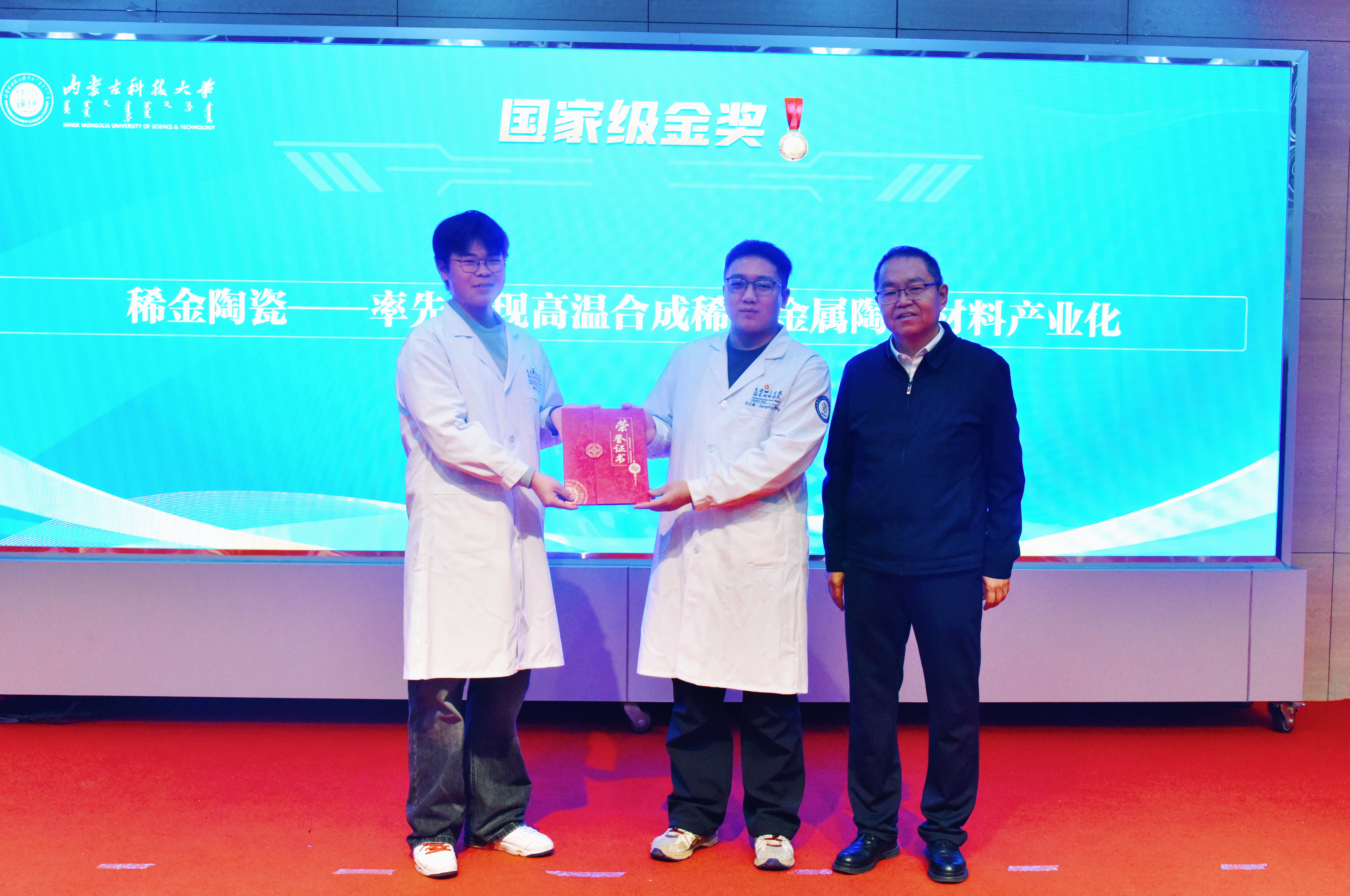 展示环节中,2025年金奖项目代表本科生创意组《稀金陶瓷—率先实现高温合成稀土金属陶瓷材料产业化》项目路演人张倩倩进行路演展示;项目负责人李岩、指导教师程军分别分享备赛、参赛心得。