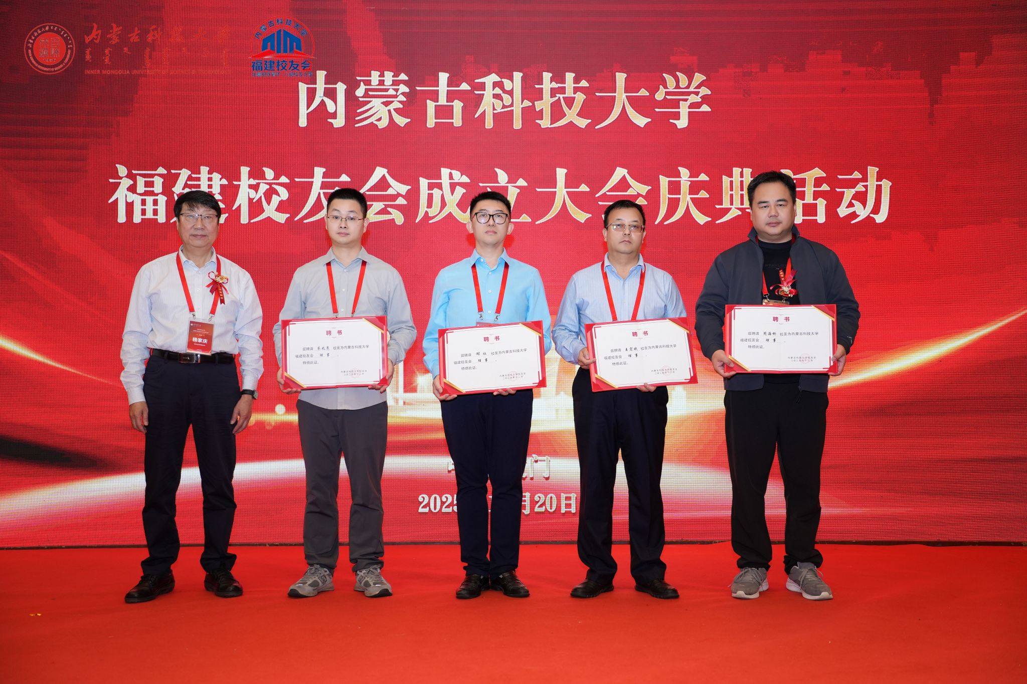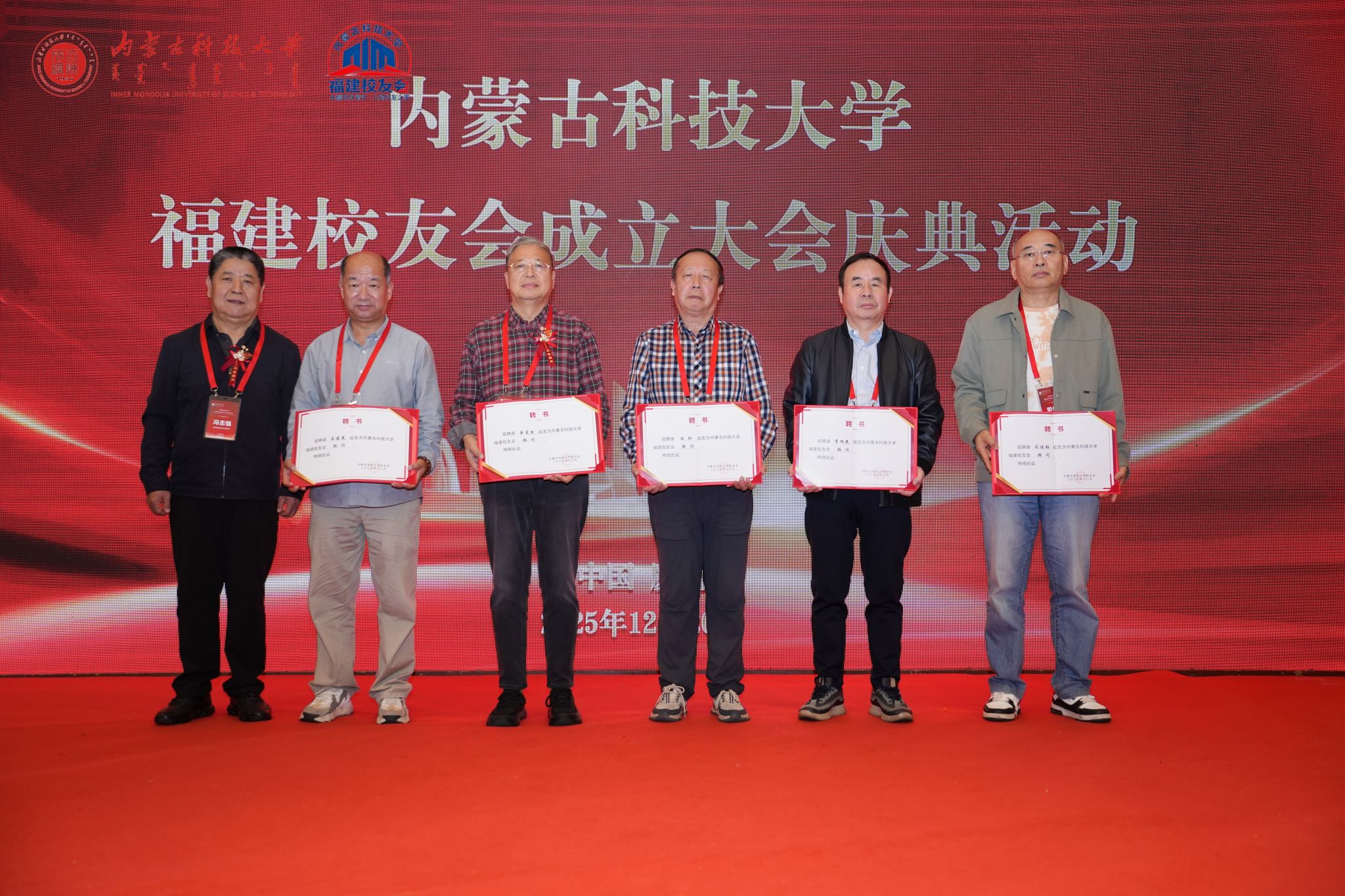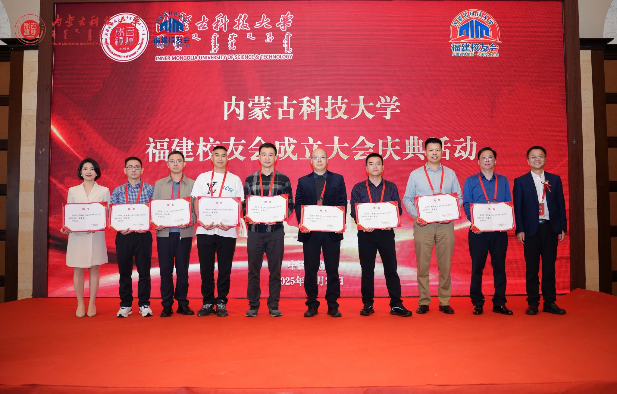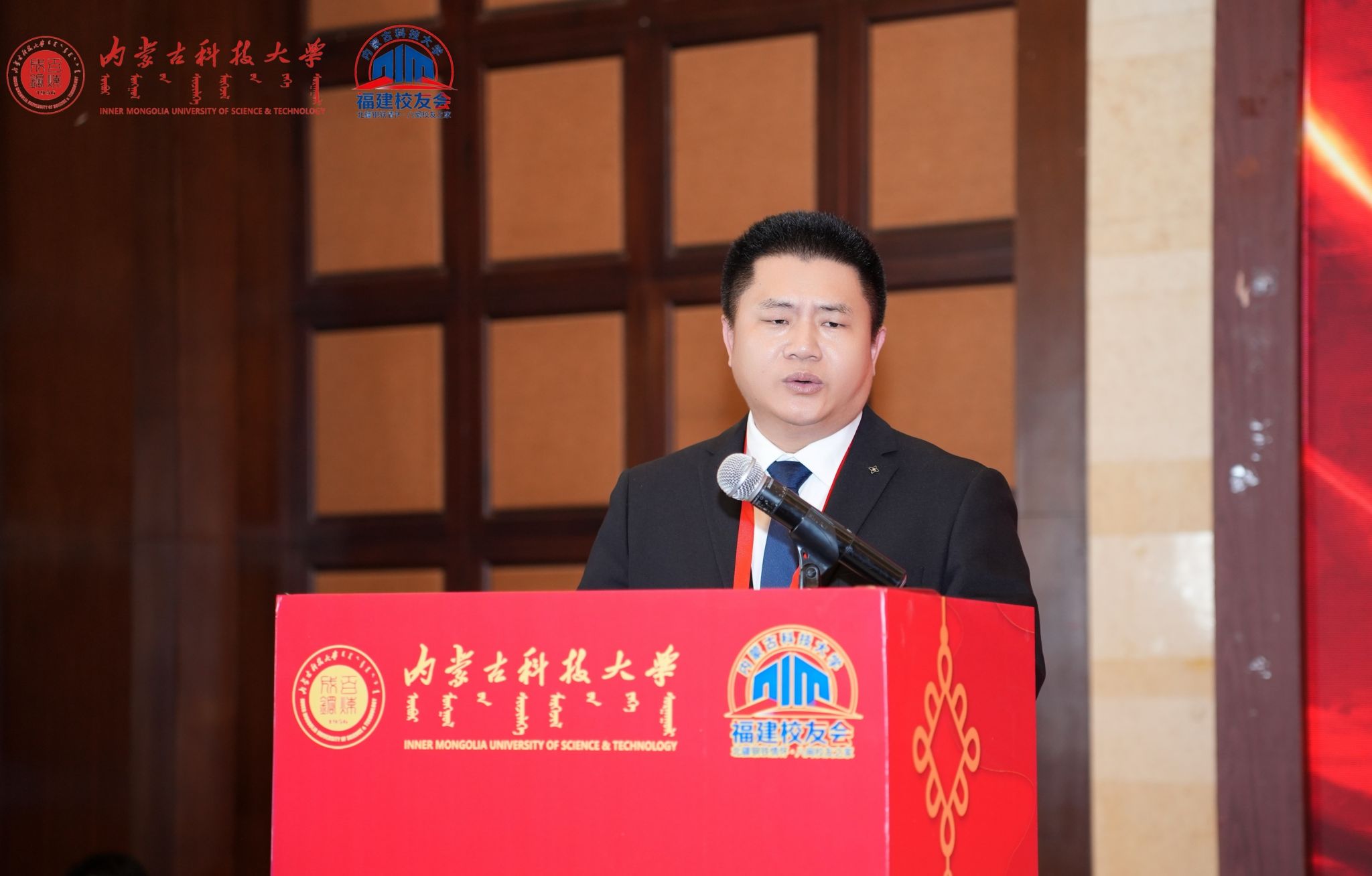 呼和在致辞中对福建校友会的成立表示热烈祝贺,并向所有在闽校友致以诚挚问候。他回顾了学校近七十年的发展历程与成就,阐述了新时代学校的使命与规划,高度肯定了福建校友秉承“百炼成钢”校训,在八闽大地各行业取得的突出成绩。他说,当前学校正处在建设“红色科大、创新科大、开放科大、美丽科大、幸福科大”的关键时期,福建校友会的成立,不仅为在闽校友搭建起凝聚乡情、共谋发展的家园,也为深化蒙闽协作、促进“草原优势”与“闽地智慧”融合注入了崭新活力。福建校友会的成立是学校校友工作的重要拓展,期待校友会成为连接母校与福建的坚实桥梁、校友互助的精神家园、事业发展的赋能平台。他诚挚邀请广大校友在2026年学校70周年校庆之际重返校园,共叙情谊、共襄盛举。