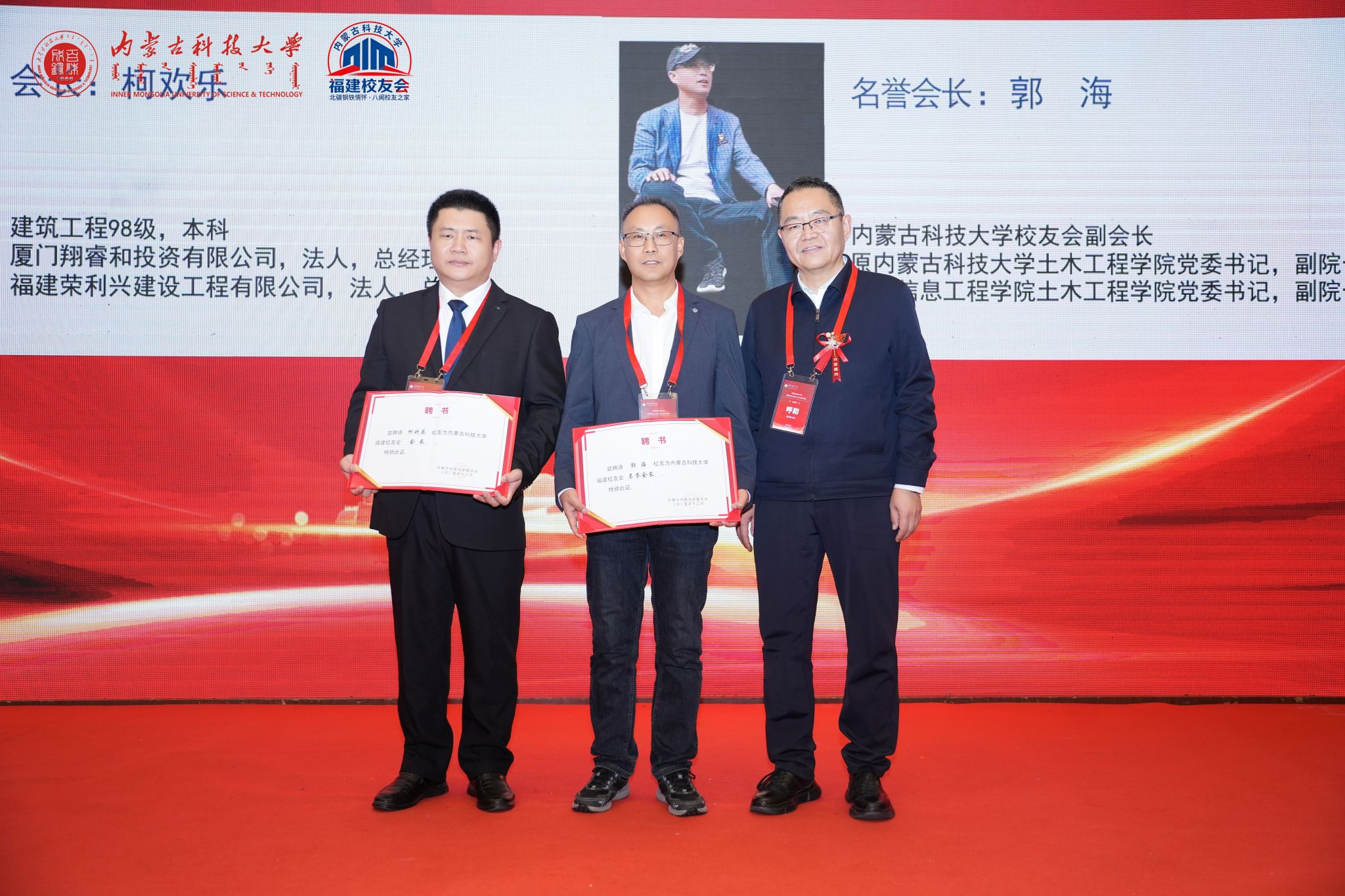 北京、广东、江苏、山东、呼和浩特、乌海等地校友会代表以及上海校友会以视频方式纷纷致贺词,福建省内蒙古商会、包头泉州商会代表也到场祝贺。每一份祝福都承载着兄弟校友会及各界朋友对福建校友会的深情厚谊与美好祝愿。