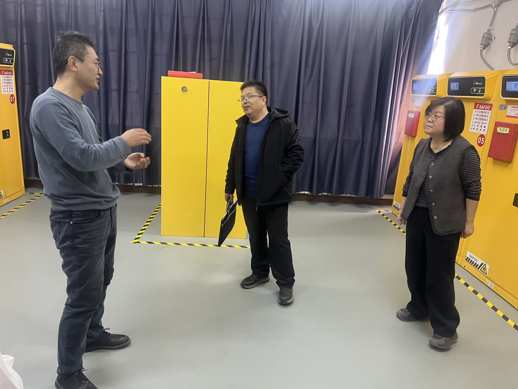 调研组还参观了基础化学实验室及危化品库房,实地察看危化品储存、管理及领用全流程规范。