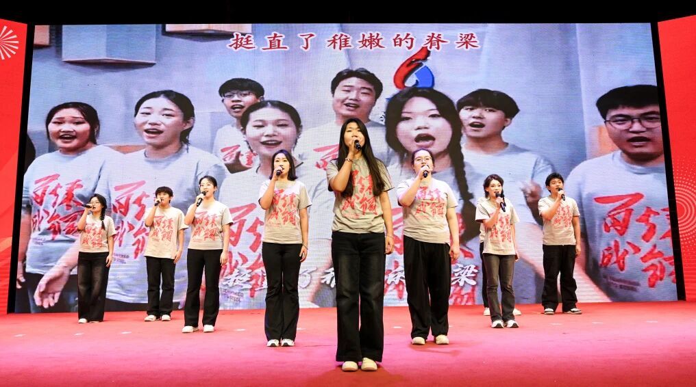 大会最后,全体师生共同唱响《百炼成钢》,为学生表彰大会画上圆满的句号。