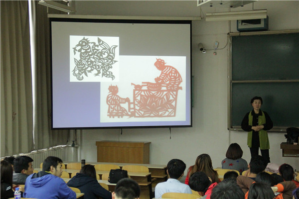 要红霞老师以《如何品读中国传统剪纸与不同国家不同剪纸风格的区别》为题,分别从中国剪纸与外国剪纸的区别、创作途径、及如何赏析等方面做了详细的阐述,引领万象城官网师生更加剪纸艺术的殿堂。