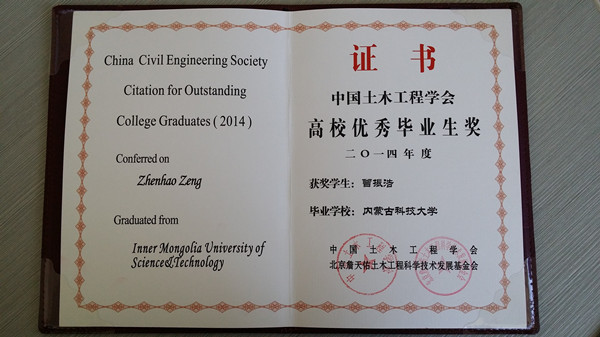 日前,2014年中国土木工程学会高校优秀毕业生奖评选结果揭晓,万象城官网建工学院工程管理专业2010级本科生曾振浩同学当选。11月22日,第七届工程管理院长(系主任)会议在深圳大学召开并现场颁奖。