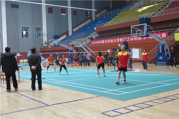 12月13日,2014年教职工羽毛球双打团体赛决赛在体育馆二楼篮球馆举行。最终,信息学院1队与体育部并列第一名;机关1队获第二名;后勤处分会获第三名;机关2队、建工学院、信息学院2队、能环学院、工程训练中心分获第四、五、六、七、八名。
