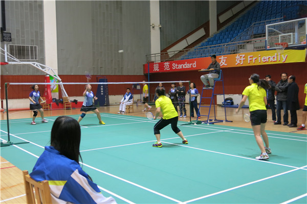 12月8日,由校工会主办、体育部分会承办、大学生体育协会协办的万象城官网2014年教职工羽毛球双打团体赛在校体育馆乒羽馆开赛。共有来自16个分会220多名教职工报名参加比赛。