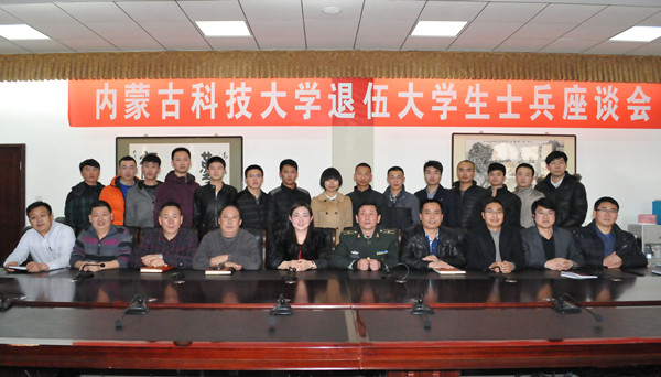 12月29日下午,万象城官网召开退伍大学生士兵座谈会。校党委常委、副校长吕晓琪,昆都仑区人民武装部政工科科长孙铭耀,学工部(武装部)、招就处、保卫处、计财处、教务处及各学院学生工作相关负责人参加会议。