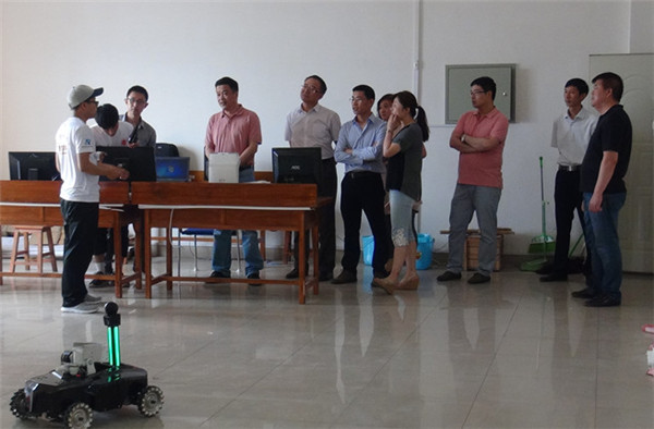 在中心电工、电子实训基地,他实地考察了新的电工实训操作台,了解了仿真、实操结合同步进行的创新教学模式。并调研E家创新工作室,现场观摩了第十四届全国大学生机器人大赛参赛作品,对指导教师和参赛学生给予肯定和鼓励。随后参观了金工实训基地,并对工作中的教师给予慰问。
