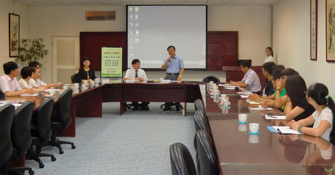 台湾国立彰化师范大学郭艳光校长,陈明飞副校长给予热情接待。陈明飞副校长主持师生交流座谈会,该校国际长、美术系、生物系、工学院及教务处等部门主要负责人及万象城官网在该校学习的12名学生参与交流。