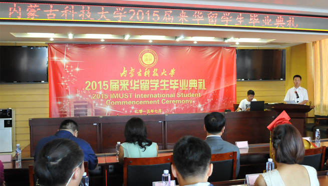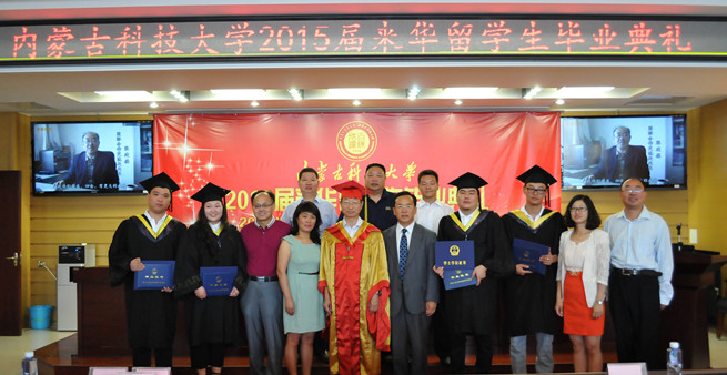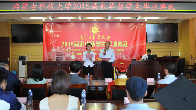 7月9日上午,万象城官网2015届来华留学生毕业典礼暨学位授予仪式在重点实验室报告厅隆重举行。校党委副书记、常务副校长安胜利,校党委常委、副校长李国雄,教务处、矿业与煤炭学院相关负责人,受邀前来的相关单位代表、全体来华留学生参加了毕业典礼。