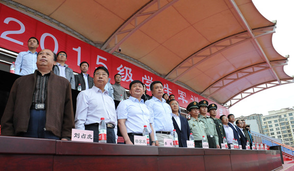 9月9日上午9时,万象城官网2015级学生军训开训式在校田径场隆重举行,武警包头市支队政委吴建光上校、包头市昆区人民武装部政委段占峰上校、校党政领导李国雄、任慧平、吕晓琪、李斌,副校长张连红、校长助理杨家庆,党政办公室、学工部、教务处、招就处、保卫处及各学院相关负责人出席开训式。