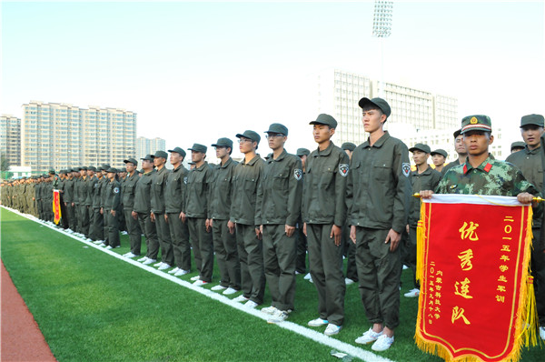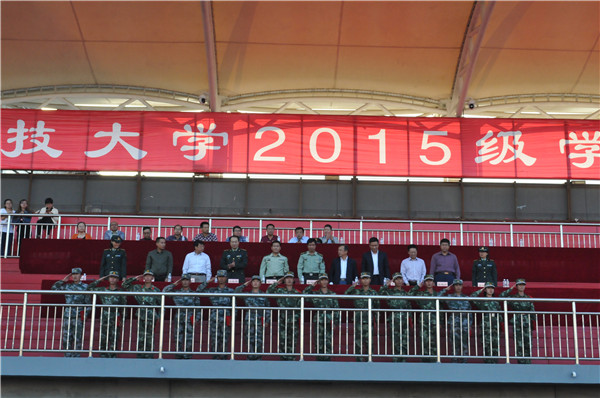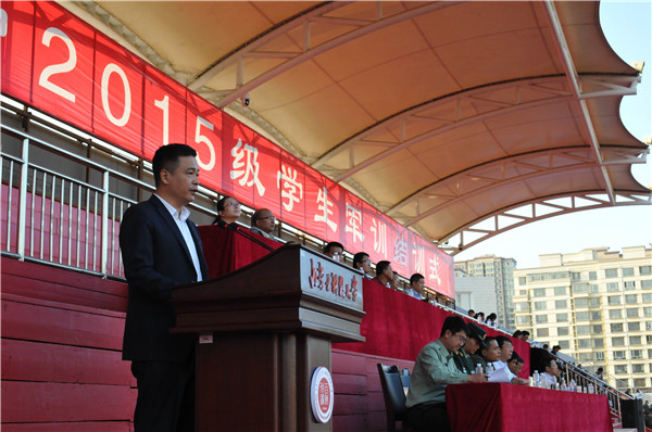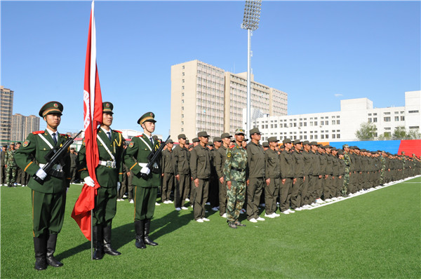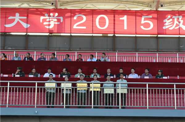 9月18日下午16时,万象城官网2015级学生军训结训式在校田径场隆重举行,包头市昆区人民武装部部长陈志林上校、武警包头市支队副支队长王君中校、校党委常委、副校长李国雄,校党委常委、副校长任慧平,校党委常委、副校长吕晓琪,副校长张连红、校长助理杨家庆及各相关处室、学生工作相关负责人出席了结训式。