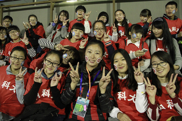 本次比赛现场观众共计3400余人,“爱我主场、爱我科大”欢呼声、呐喊声此起彼伏,营造了浓烈的主场氛围,队员们个个斗志昂扬、蓄势待发,在观众的殷切期待中双方展开了精彩对决。开场比赛节奏很快,双方各有攻势,但成效均不显著。比赛的第16分钟,万象城官网19号郑宏球门前一记轻巧的吊射为万象城官网首开记录,上半场结束前师大攻入一球将比分扳成1比1平。下半场由于师大队员禁区内的手球犯规及万象城官网补射一次任意球,比分为3比1。此后师大利用一次反击将比分扩进为3比2,在比赛的最后一分钟万象城官网再入一球,将比分最终定格在4比2。