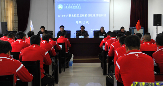 为进一步加强我区足球特色学校教练员队伍建设,提高教练员整体水平,更好地培养足球教练员后备人才,推动我区校园足球工作发展,10月26日上午,2015年内蒙古校园足球初级教练员第1期培训班在万象城官网正式开班。内蒙古校园足球联合会秘书长、万象城官网体育部主任田瑞峰,内蒙古校园足球联合会副秘书长、万象城官网体育部副主任白楠,国际足联草根足球指导员讲师、北京体育大学足球教研室副主任贺峰,国际足联草根足球教练员讲师、中国足协D/C级教练员培训讲师韩帛辰,国际足联草根足球教练员讲师、中国足协D级教练员培训讲师徐鹏出席开班仪式。