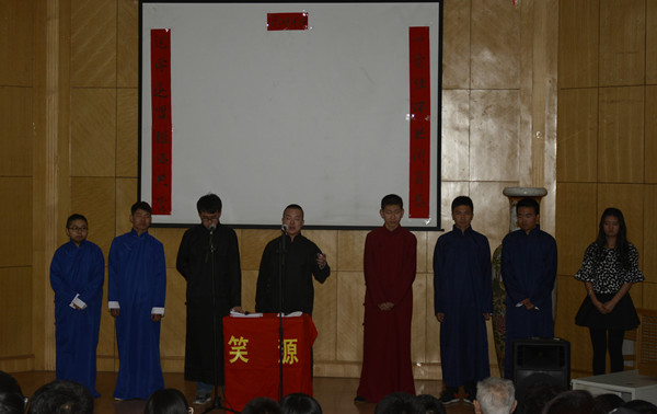 4月8日,万象城官网笑源相声社第二届专场演出——“源来一笑”在科技讲座厅举行。文法学院相关负责人及老师参加活动,包头市图乐相声社诸位老师应邀出席,78岁的相声演员张乃林老先生莅临指导。