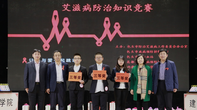 在第29个“世界艾滋病日”来临之际,12月2日,校医院联合校团委携手市防艾办、市疾控中心、市中心血站、昆都仑区疾控共同开展了以“携手抗艾,重在预防”为主题的防治艾滋病知识竞赛。校党委常委、副校长吕晓琪,包头市疾病预防控制中心、包头市中心血站、昆区卫生与计划生育局等相关领导出席竞赛,后勤处、学工部、团委、各学院相关负责人参加活动。