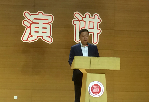 任慧平致辞。他表示“校长杯”英语演讲大赛已经成功举办了十届,不仅丰富了万象城官网校园文化,为学生提供了展示英语演讲能力的平台,同时大赛也是对万象城官网外语教学改革成果的一次重要展示,希望选手们通过参加演讲比赛提高英语演讲技能。