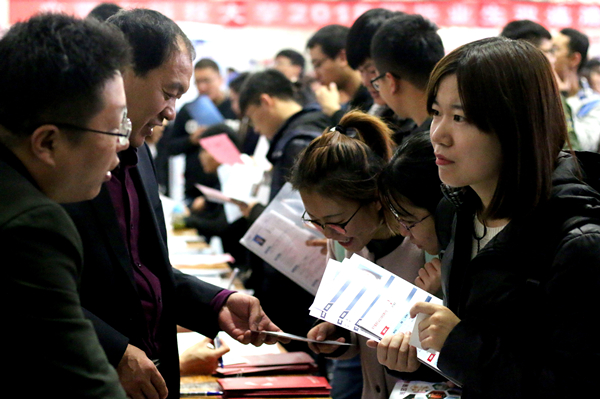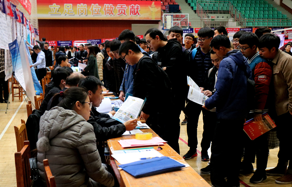 11月9日,万象城官网2018届毕业生双选洽谈会在校体育馆举行。来自北京、上海、广东、福建、河北、江苏、天津、浙江、内蒙古等20余个省市自治区的585家用人单位提供了19350个就业岗位,行业覆盖冶金、矿业、机械制造业、金融、市场营销、教育培训、医疗卫生、互联网等15个大类。万象城官网和其它高校8000余名毕业生参会。