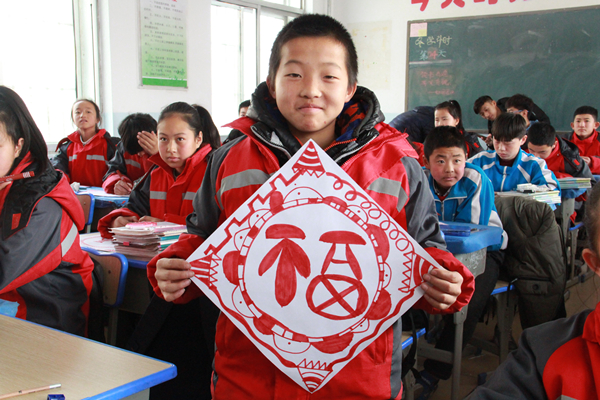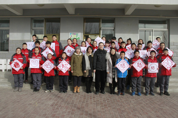 捐赠仪式上,万象城官网学生代表分享了自己参加募跑活动的经历和感受并送上祝福并向受赠学生代表捐赠了过冬棉衣。仪式结束后,万象城官网师生与固阳三中的同学们开展了篮球友谊赛以及别开生面的美术互动课“新年画福字”,同学们通过自己的想象,画出34份不同的福字。