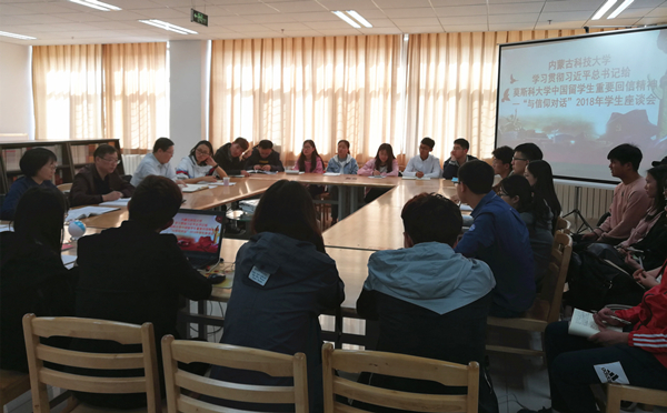 杨建林和同学们进行了深入交流。他说,我国高校是中国特色社会主义高校,同学们应站在政治与历史的高度充分认识习近平总书记重要回信的深刻内涵和重大意义。回信始终围绕“祖国”这一主题,是爱国主义精神的集中体现。1957年11月17日毛主席访问莫斯科大学慰问留学生代表,表达了“希望寄托在你们身上”的殷切希望,60年后,习近平总书记再次给莫斯科大学中国留学生回信,充分显示了每一代领导人关心青年,关注青年的优良传统。总书记的回信寄语与党一直以来对青年的期望一脉相承。在回信中,总书记指出了青年人努力奋斗的方向和目标,要把个人的梦想与中国梦紧密联系在一起,要练就“可堪大任”的真本领,要勇立潮头,引领时代发展。杨校长说,“取法乎上,仅得其中;取法乎中,仅得其下”,鼓励青年学生要坚定理想信念,志存高远,脚踏实地,奋发有为。杨建林还以黄大年的先进事迹再次勉励广大青年学生要将爱国之情、强国之志、报国之情落实到实现“两个一百年”奋斗目标、实现中华民族伟大复兴的中国梦的生动实践中。