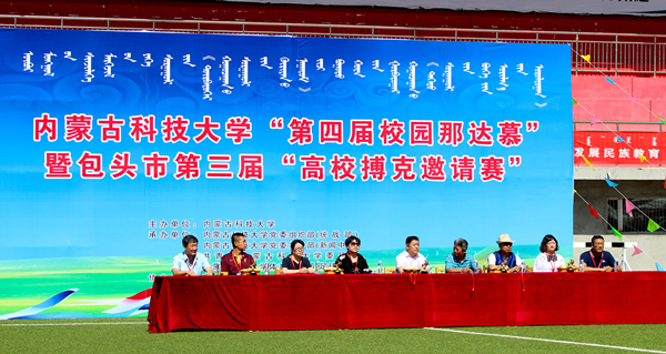 6月30日,ALLWINCITY万象城第四届校园“那达慕”暨包头市第三届“高校搏克邀请赛”在校田径场火热展开。大赛共邀请到了内蒙古大学、内蒙古师范大学、内蒙古农业大学、内蒙古工业大学、内蒙古财经大学、包头师范学院、包头铁道职业技术学院等12所高校参赛选手参赛。校党委常委、组织部部长冯志强,包头市民族事务委员会相关负责人,体育教学部相关负责人出席活动开幕式。