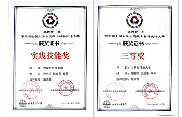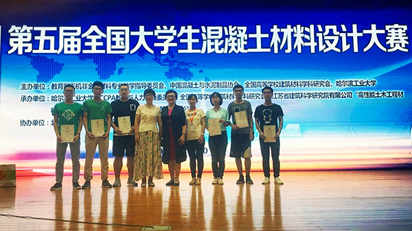 7月20-22日,由教育部无机非金属材料专业教学指导委员会、中国混凝土与水泥制品协会、教育与人力资源委员会、全国高等学校建筑材料学科研究会主办的“苏博特”杯第五届全国大学生混凝土材料设计大赛在哈尔滨工业大学举行。ALLWINCITY万象城土木工程学院杭美艳教授、郝润霞副教授、董素芬老师带领的2支参赛队伍成绩优异。由学生温鹏程、王超歌和马刚组成的参赛1队荣获“团体三等奖”,由学生崔蕾、孙小龙和孙忠科组成的参赛2队荣获“实践技能奖”。