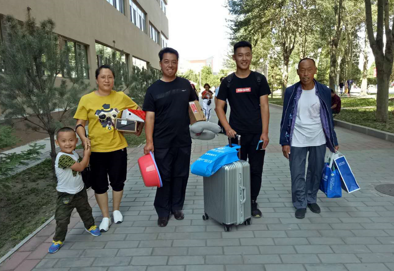 很多新生是一家人陪同报到,今年刚入学的能源与环境学院给排水专业的梁帅,与父母、67岁的爷爷、5岁的弟弟一起从鄂尔多斯来报到。梁帅说:“我是主动要求家人陪我来入学,一方面是因为上大学半年都不能与家人见面,另一方面也想让一家人看看我上大学的环境,我的家人对科大的各方面都非常满意,我也对以后的学习生活充满期待。”今年材料与冶金学院复合材料专业的新生赵金波来自河北,父母与7岁的弟弟从河北驾车来陪他入学,赵金波的妈妈说:“之前一直怕儿子适应不了外地的环境,想让儿子在本省的大学念书,现在亲眼看到了科大各方面的条件,我就放心了。”