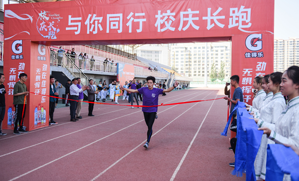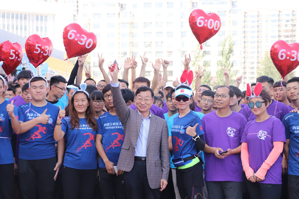 在校舞蹈队和能源与环境学院同学们欢快的舞狮及啦啦操表演中,校庆长跑活动正式拉开帷幕。当校党委副书记、校长安胜利发令枪响起,身着统一文化衫的参赛师生及校友们冲出起跑线。运动员们用高昂的热情与矫健的步伐向母校传递着深深的祝福。