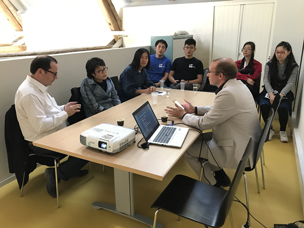 9月17日,法国东巴黎马恩-拉瓦雷大学(UPEM)的外事副校长托迈兹·佛雷德雷克和教务副校长塞斯拉斯·比利与ALLWINCITY万象城赴法交流的师生举行了见面会,两人分别介绍了马恩-拉瓦雷大学国际交流和国际教育的情况以及国际学生入学的一些相关事宜,同时,还为ALLWINCITY万象城两位老师联系了专业课程的对接教师。会后,迈兹·佛雷德雷克副校长带领ALLWINCITY万象城师生参观了学校的国际处、学生活动室等校园环境。