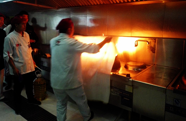 演习前,饮食中心做了详细的预案和部署。通过实操演习,强化了食堂员工的消防安全意识,增强了员工相互协调、自救、自防等能力,检验和完善了饮食中心消防应急预案的实用性、有效性、完整性,也检验了餐厅消防器材的可靠性。演习后,各餐厅根据实际情况,添置了不同数量更加适用于厨房的水基灭火器和灭火毯。