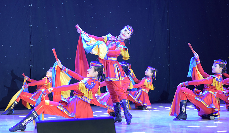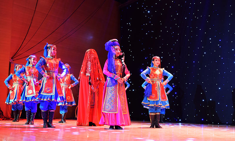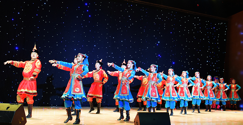 晚上7点,一场精彩绝伦的乌兰牧骑歌舞表演在学校音乐厅盛大开演,500余名师生观看演出。
