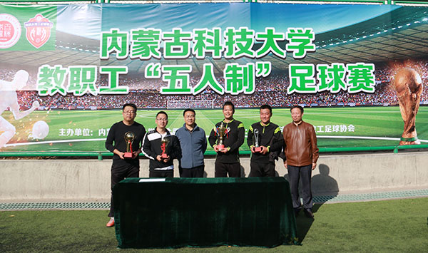 本次足球比赛由校工会主办,艺术与设计学院分会、材料与冶金学院分会、教工足球协会承办,共有来自各学院、机关各职能处室组成的8支队伍,100多名教职工参加,经过5天16场比赛的激烈角逐,最终机关图书馆联队获得冠军,材冶工训联队获得亚军,信息工程学院获得季军,机械工程学院获得本次比赛的精神文明奖。机关图书馆代表队的聂振东获得最佳射手奖,郝天、张博文获得优秀裁判员奖。