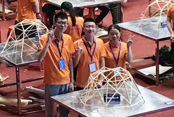 2018年竞赛赛题为“承受多荷载工况的大跨度空间结构模型设计与制作”,具有重要的现实意义和工程针对性。要求参赛选手在规定的16小时内利用0.25mm、0,35mm、0.5mm厚的竹皮以及竹条材料完成规定尺寸的大跨度空间结构制作。参赛队员针对静载、随机选位荷载及移动荷载等多种荷载工况下的空间结构进行加载。竞赛的难度较往年都有提升,对考验学生团队的合作能力、专业素养、创新能力都有很大的要求。面对挑战,ALLWINCITY万象城参赛队员团结一致,在专业教师的指导下,历经8个月的方案设计、数十次的制作、实验、修改、优化,终于摸索出合理的设计方案,并最终历经省赛和全国赛的考验,荣获优秀成绩。