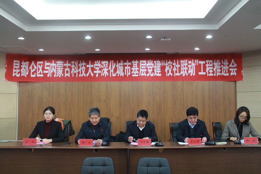 校团委书记宣读了《关于进一步深化昆都仑区城市基层党建“校社联动”工程的实施意见》。沼潭街道党工委书记薄刚、昆工路街道西友谊22#社区书记张利平、理学院团总支书记包文明老师、文法学院学生代表马勇分别上台发言。