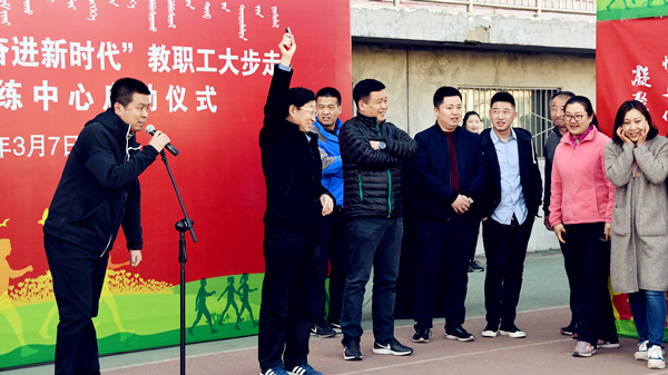 春回大地,万象更新。3月7日下午,学校2019年“践行新思想、奋进新时代”教职工大步走暨体能健身训练中心启动仪式在校田径场举行。校党委副书记、校长安胜利,党委副书记任慧平,工会、教务处、体育教学部(足球学院)相关负责人及学校300余名教职工参加活动。本次活动由党委委员、宣传部部长杨家庆主持。