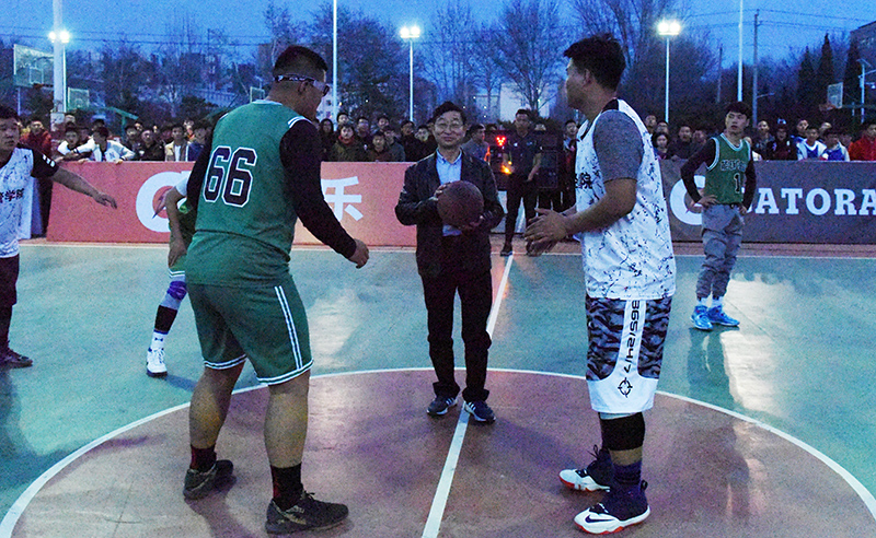 安胜利为首场比赛开球。第一场比赛为经济与管理学院对阵能源与环境学院。断球、上篮、进攻、防守,球员们以精湛的球技、默契的配合赢得现场观众的阵阵掌声。经过激烈角逐,经济与管理学院以48∶36的成绩战胜能源与环境学院,获得本次比赛的首胜。