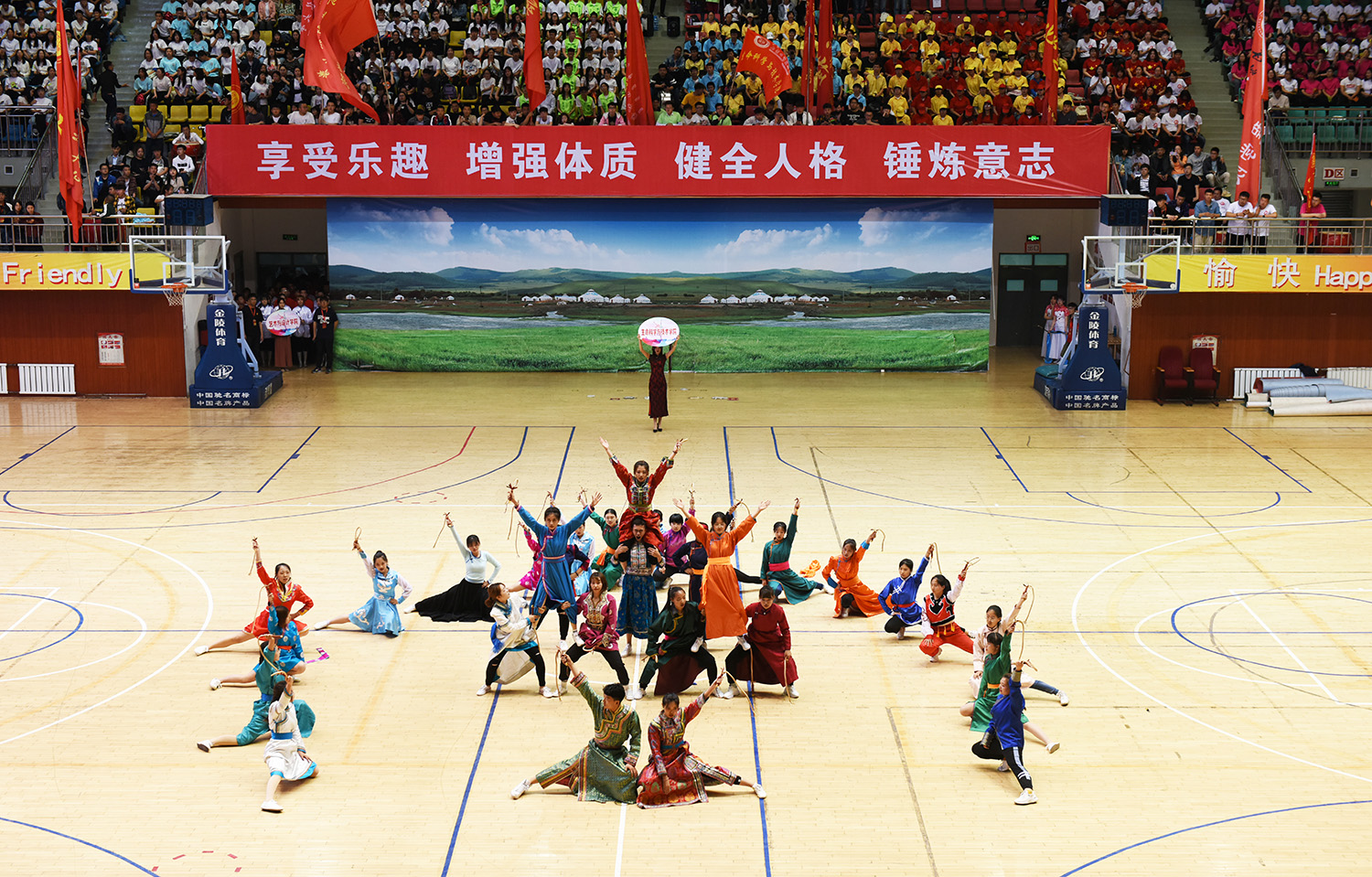 比赛在激昂的开场舞中拉开序幕,参赛队伍及裁判员依次入场。雄壮的国歌声响起,全场起立,面向国旗行注目礼。