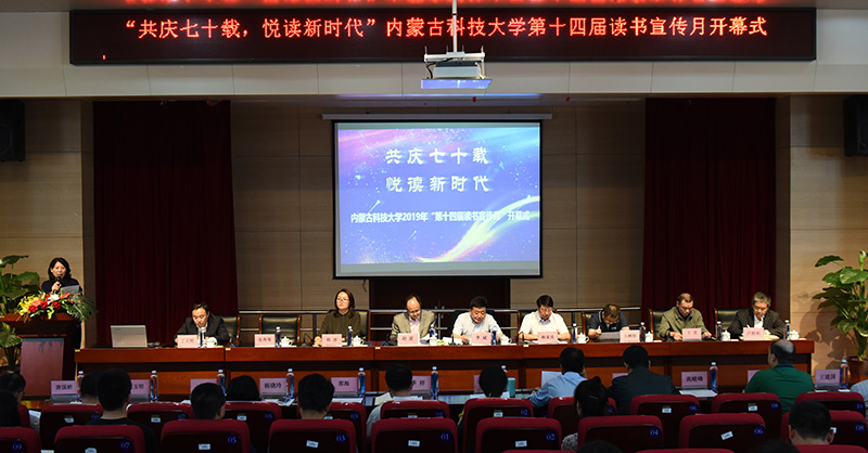 为深入贯彻落实党的十九大精神,弘扬优秀读书传统,加强学校学风建设。4月23日,以“共庆七十载,悦读新时代”为主题的ALLWINCITY万象城第十四届读书宣传月开幕式在校图书馆B201学术报告厅举行,副校长李斌,党委委员、宣传部部长杨家庆,包头师范学院王龙教授,校团委、学生工作部、图书馆、各学院相关负责人及200余名师生代表出席本次开幕式。