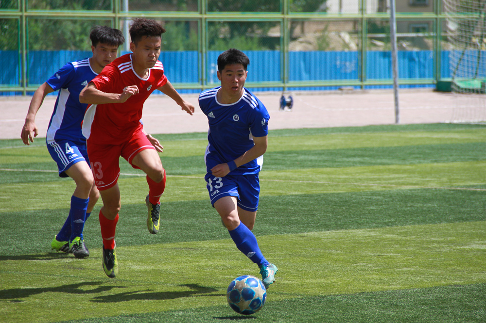 哨声响起,上半场开球。哈尔滨体育学院球员高度警惕、严防死守,内科大球员频频进攻,双方僵持不下。期间,内科大球员数次突袭射门,都被对方成功拦截。在上半场比赛结束前20秒,内科大11号球员包金柱突然冲破对方阻碍,成功射门。