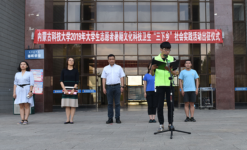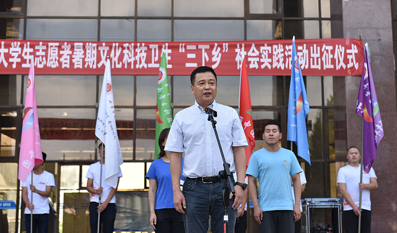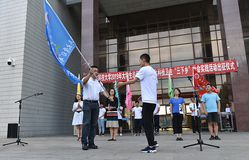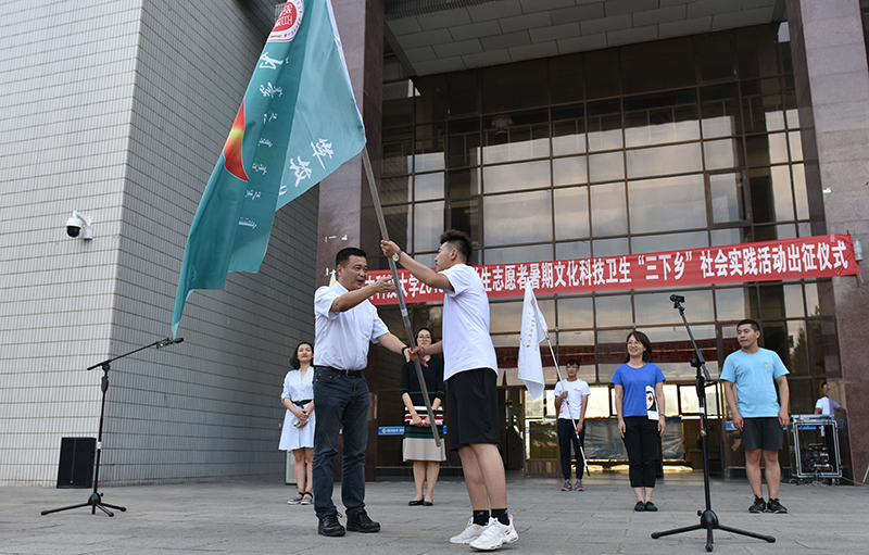 7月4日下午,2019年全国大学生志愿者暑期文化科技卫生“三下乡”社会实践活动出征仪式在学校春晖学堂前举行。校党委副书记任慧平,校团委主要负责人、25支暑期社会实践直属队参加仪式。本次仪式由校团委书记韩冰主持。